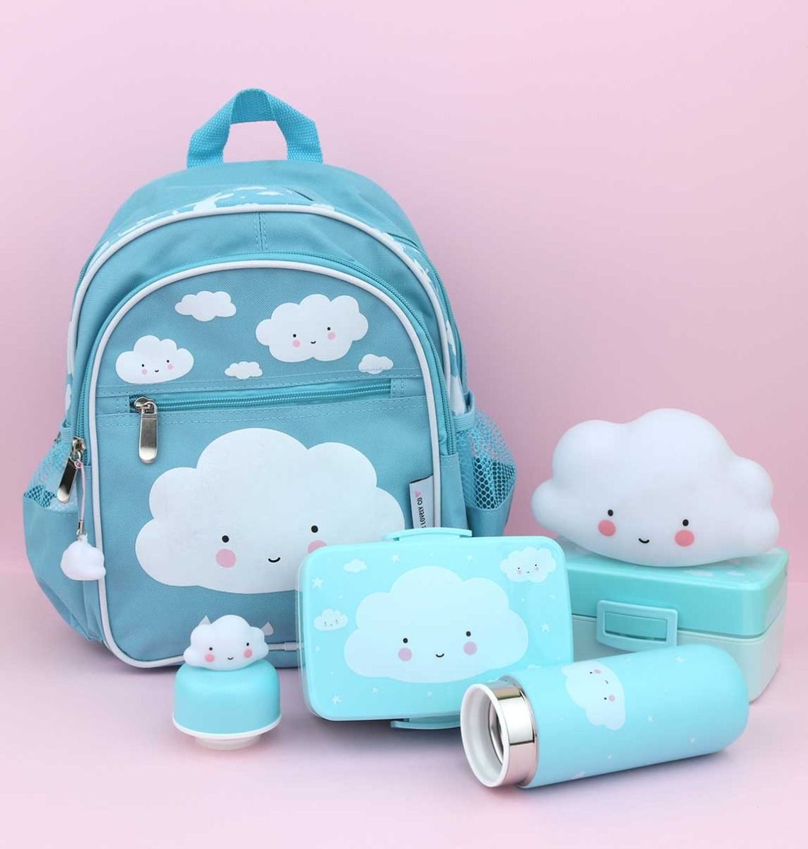 Połącz termos z pojemnikiem na lunch i plecakiem z tym samym wzorem chmurki.