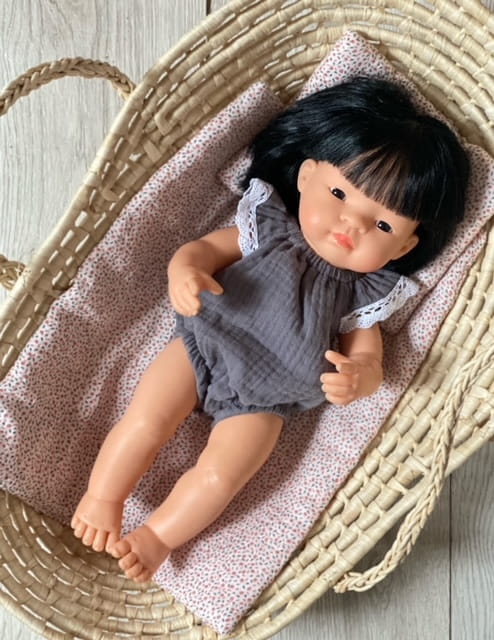 Śliczne body dla lalki Miniland 38 cm z koronką szare.