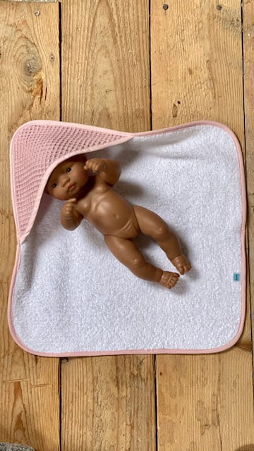 Ręczniczek będzie pasował dla lalek Miniland 32 cm.