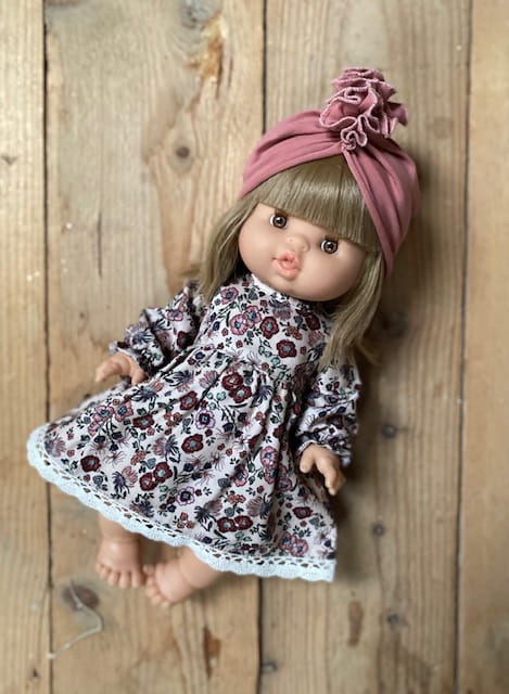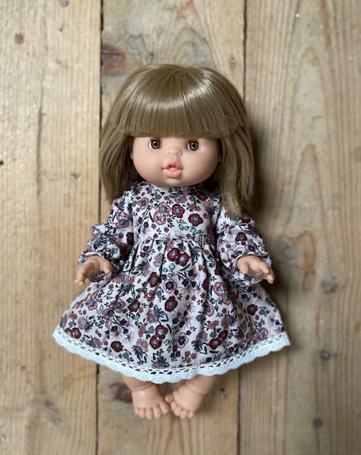 Urocza sukienka z długim rękawem i koronką dla lalki Paola Reina , Minikane 34 cm.