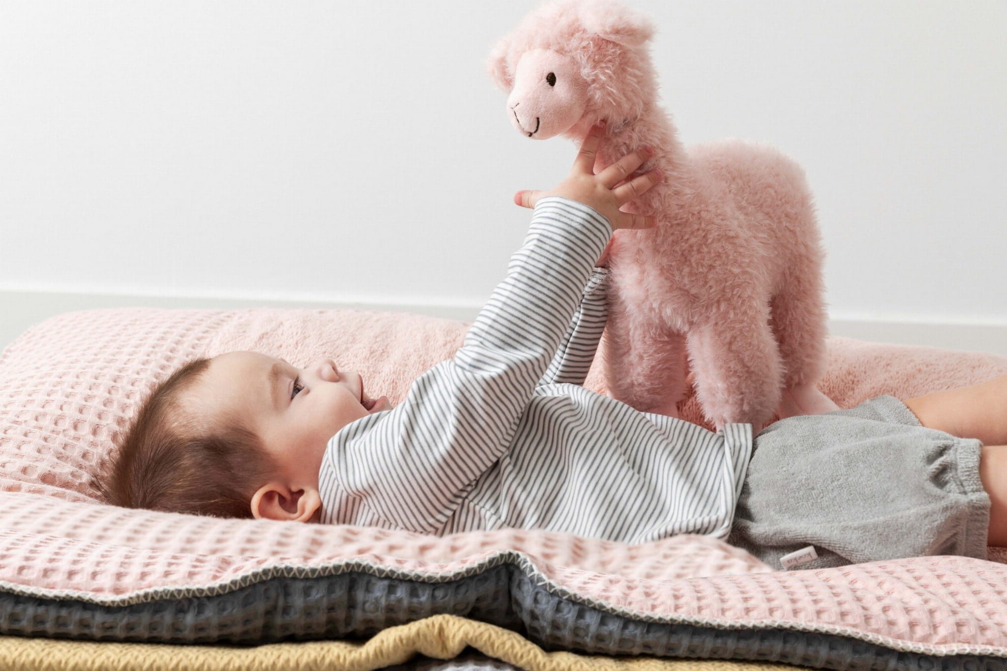 Lama posiada śliczne, puszyste i mięciutkie futerko, które jest bezpieczne dla dzieci od urodzenia.