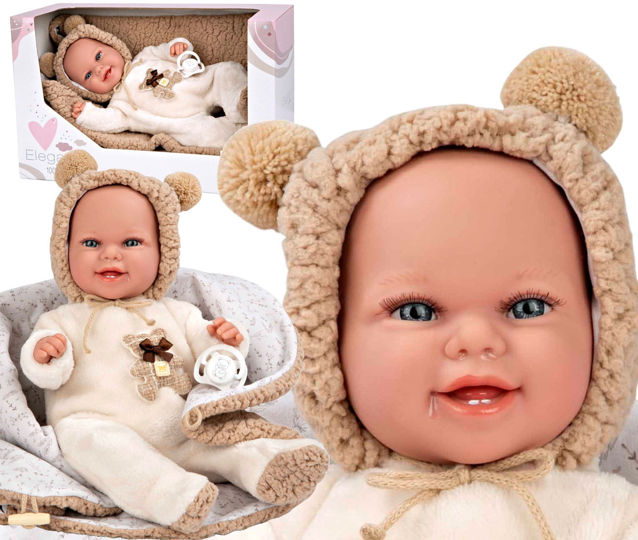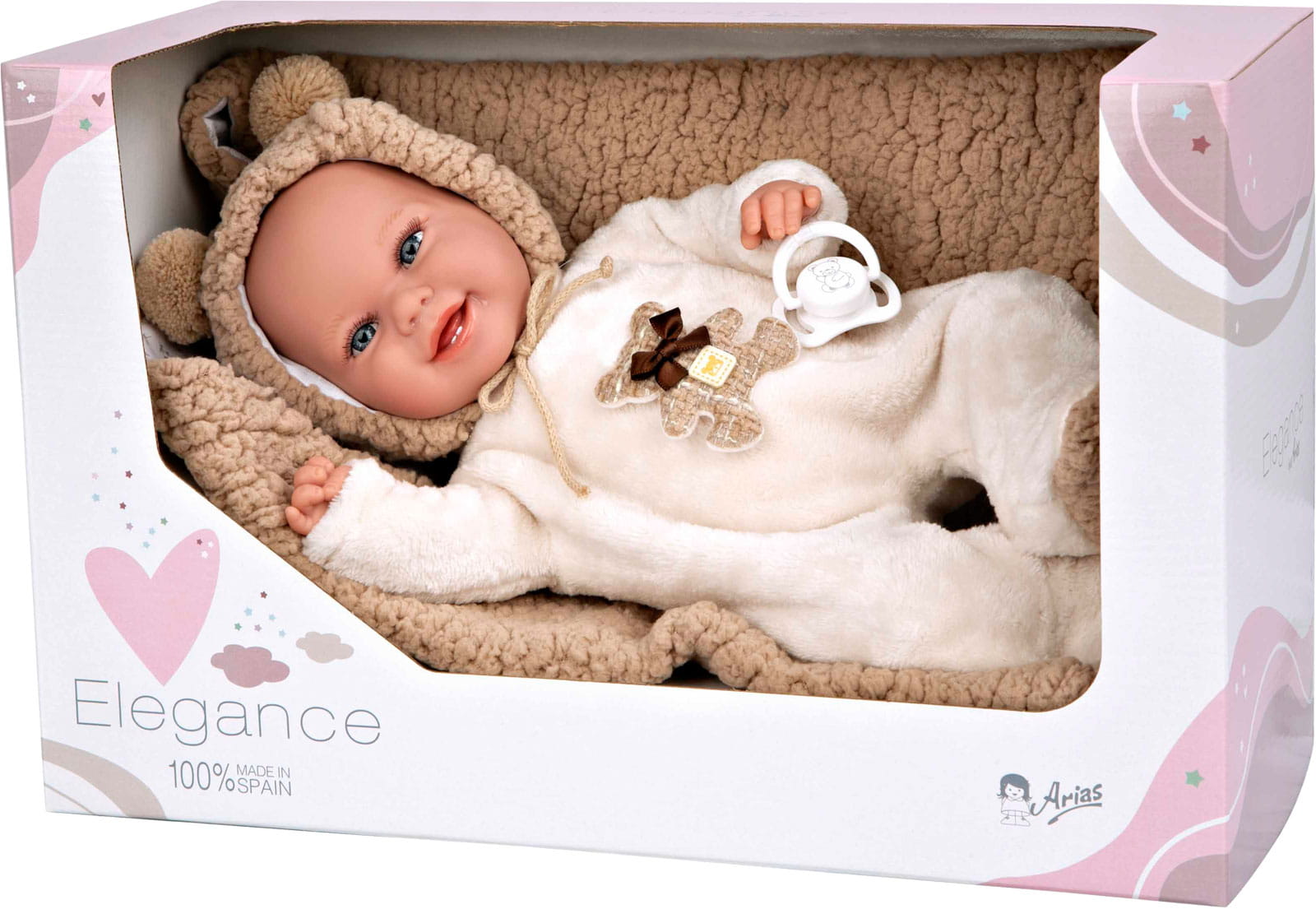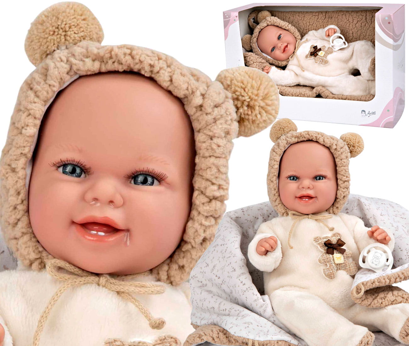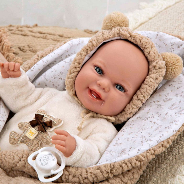 BOBAS MUNECAS ARIAS - lalka 35 cm z miękkim brzuszkiem i kocykiem