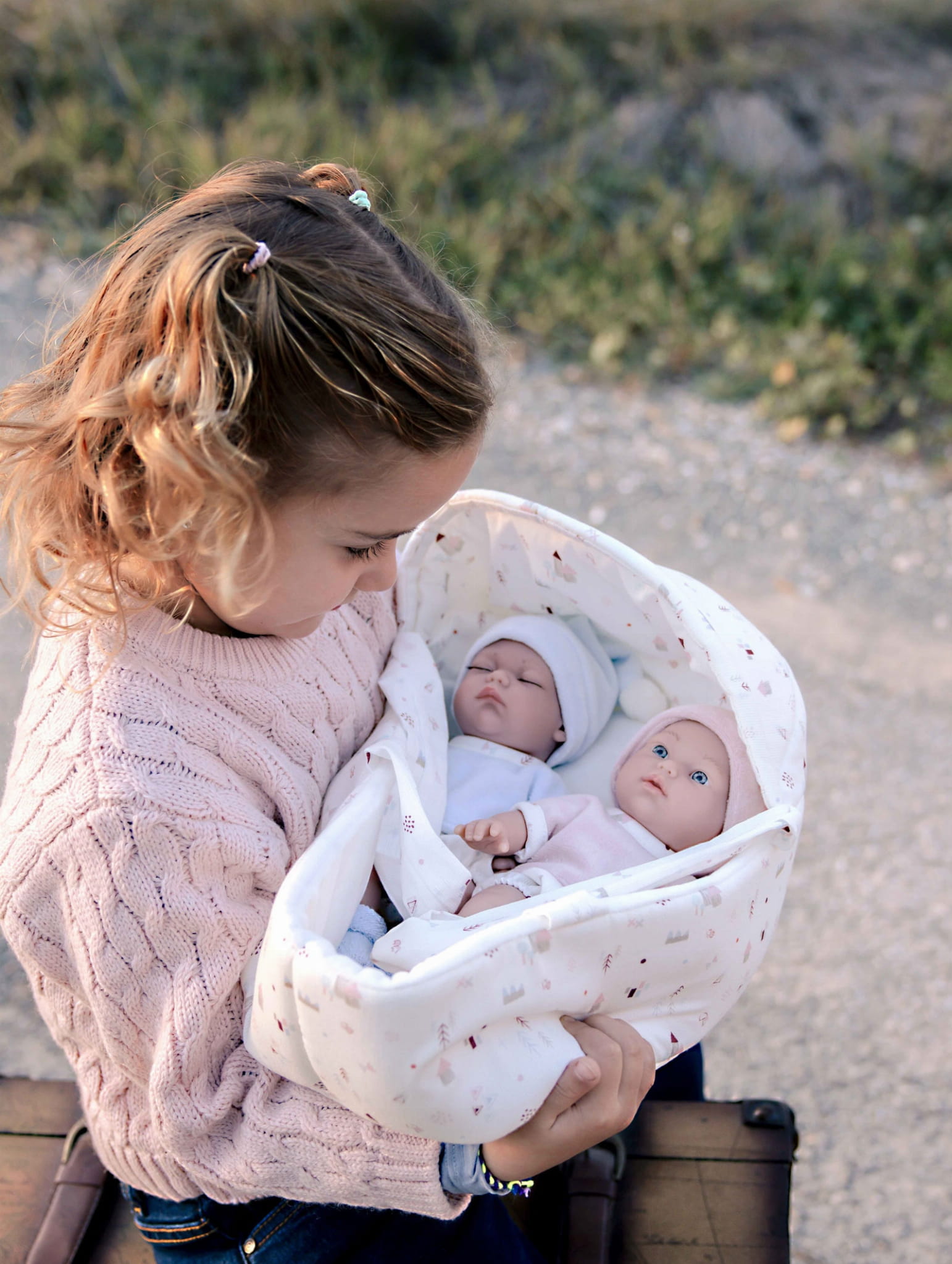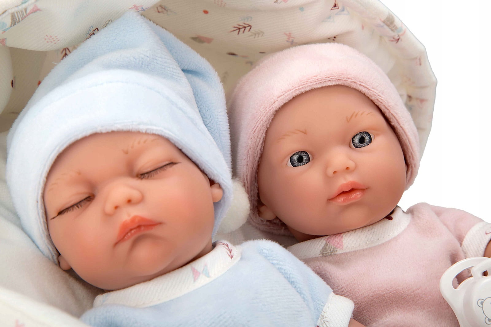 Laleczki bobaski hiszpańskiej marki Munecas Arias 26 cm w nosidełku.