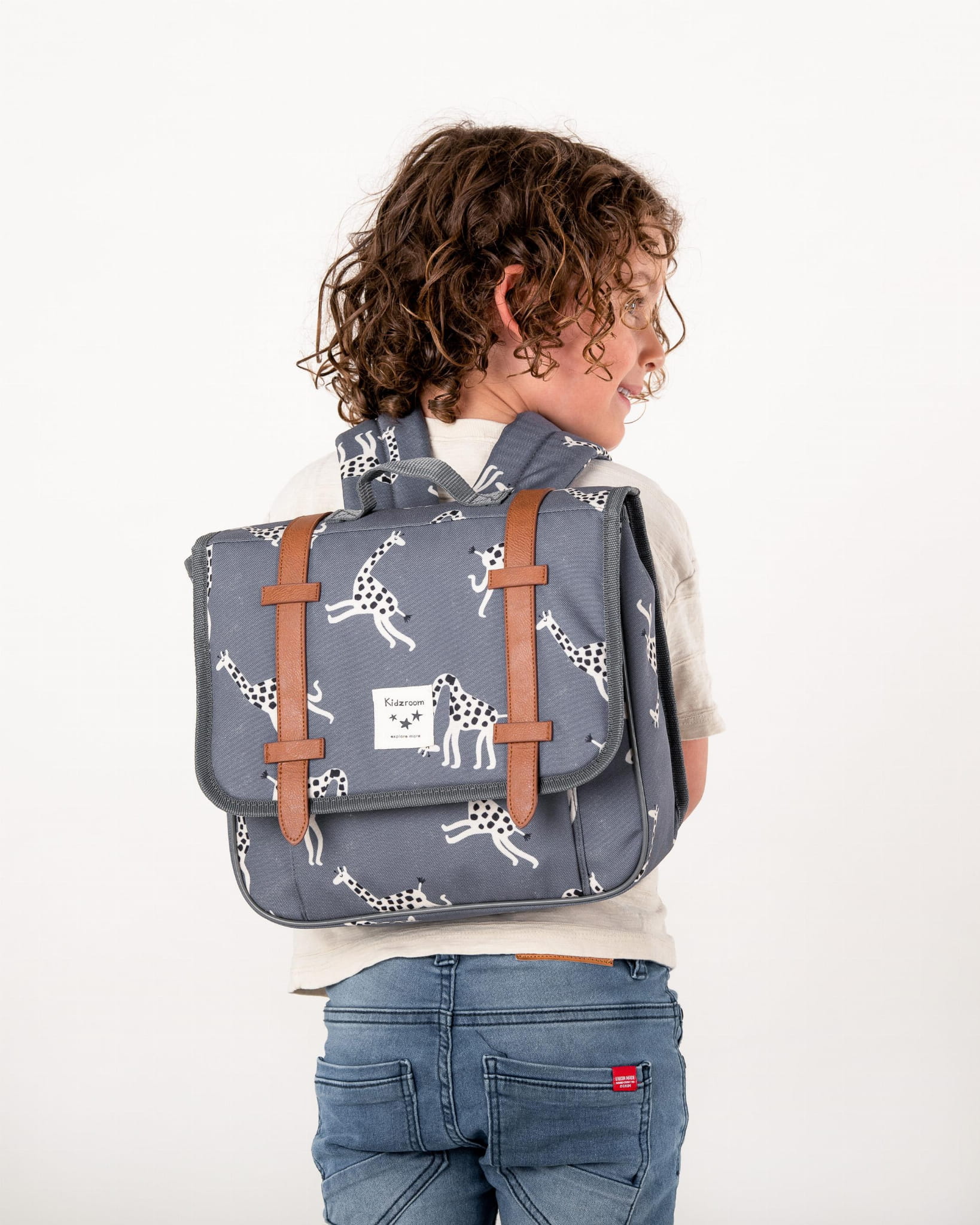 Kidzroom to holenderska marka dla małych dzieci i stylowych rodziców. Wesołe nadruki i modne kolory idealnie pasują do wyobraźni dziecka i do każdego stroju. Produkty są idealne na przygody z całą rodziną. Zostały zaprojektowane specjalnie dla małych dzieci, przedszkolaków i starszaków. Dla rodziców maluchów są to must-haves, którego nie może zabraknąć! Dzięki produktom wykonanym z przetworzonych butelek PET, masz w swoich rękach zrównoważony tornister plecak.