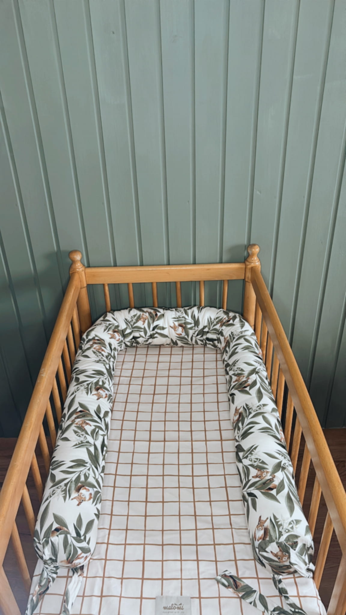 Kokon wykonany jest z bawełny z autorskim nadrukiem Woodland. W środku boków znajduje się wypełnienie silikonowe, antyalergiczne. Wypełnienie materacyka to gąbka antyalergiczna stosowana w łóżeczkach dziecięcych. Kokon poprzez funkcje odpinanego na zamek boku można łatwo wyprać, a także sam bok może posłużyć jako ochraniacz do łóżeczka. Taka multi funkcyjność sprawi, że kokon posłuży na dłużej. Kiedy maluszek wyrośnie z kokonu sam bok można użyć w łóżeczku jako ochraniacz. Również pokrycie materacyka jest zdejmowane, przez co bardzo jest go utrzymać w czystości.