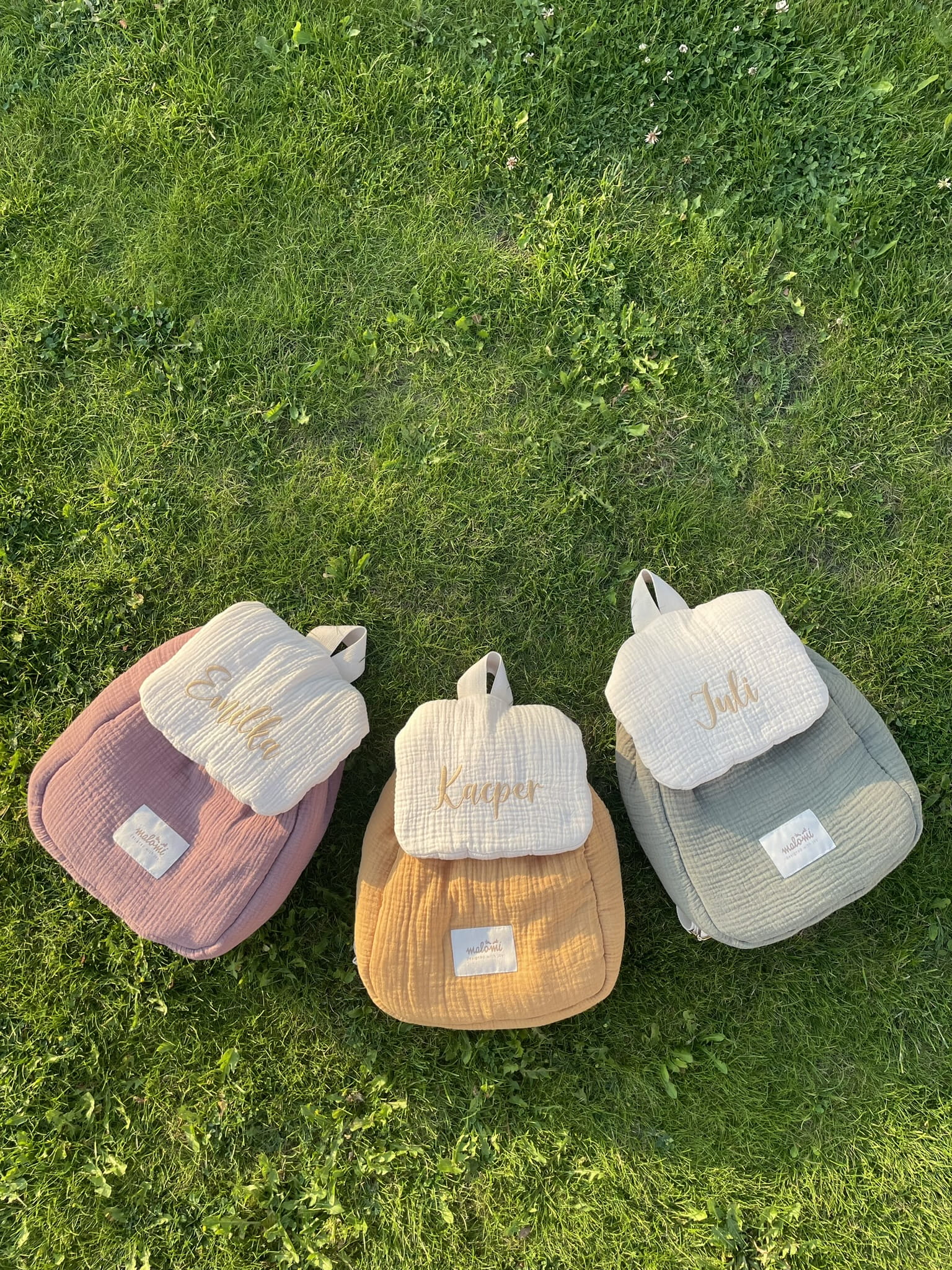 Plecak muślinowy z imieniem dziecka Pink marki Maloni.