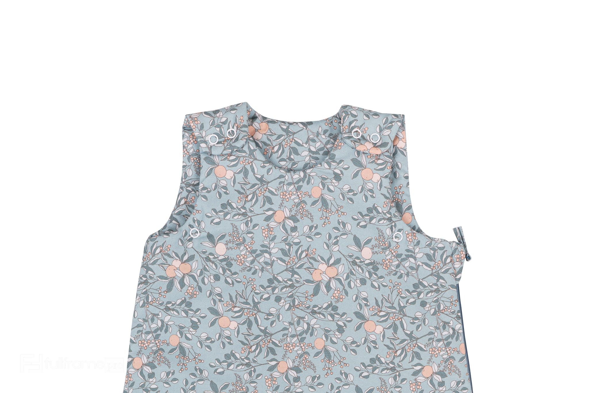 Śpiworek ma praktyczne napy na ramionach dzięki, którym możesz założyć go dziecku bez przeciągania przez głowę.