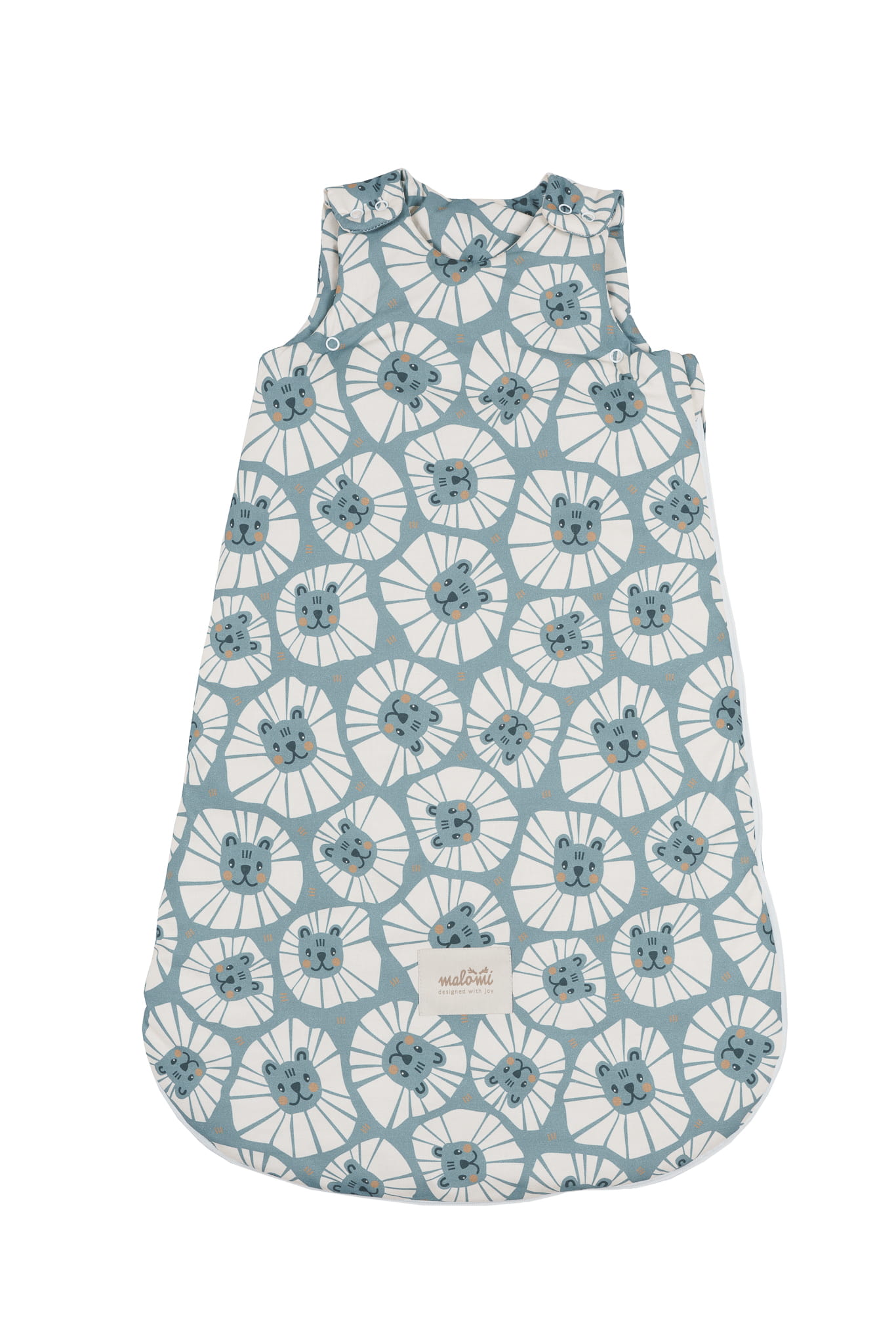Praktyczny śpiworek wykonany z drukowanej bawełny.