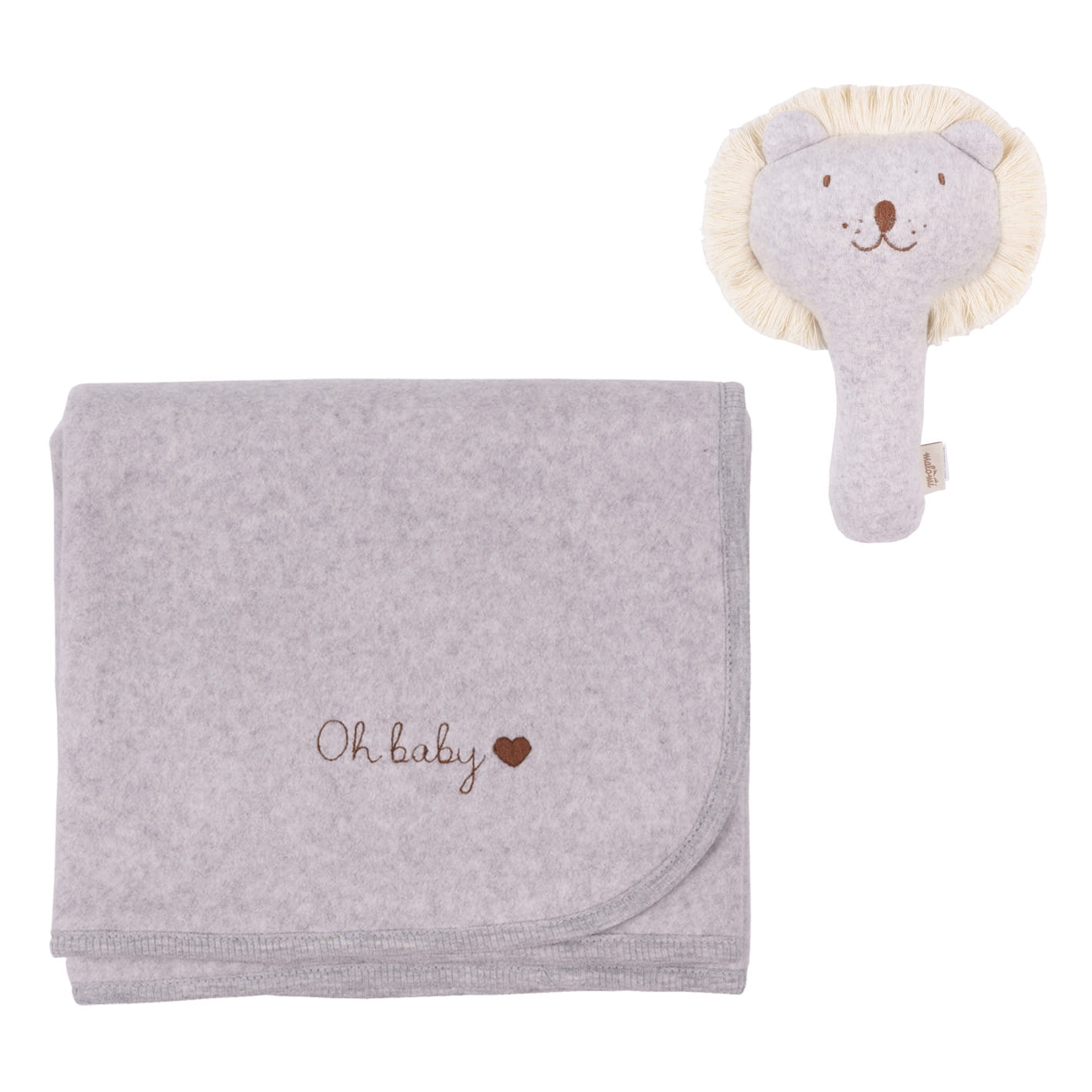 Malomi Zestaw Fleece oh Baby Lion grzechotka i kocyk Grey Melange z personalizacją