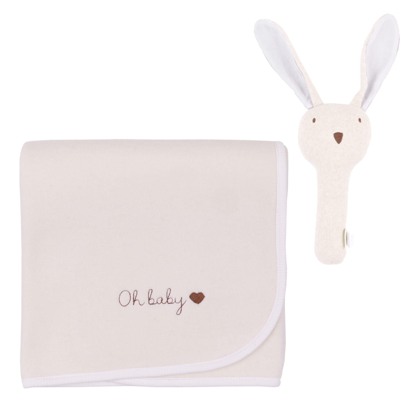 Malomi Zestaw Fleece oh Baby Rabbit grzechotka i kocyk Cream Melange z personalizacją