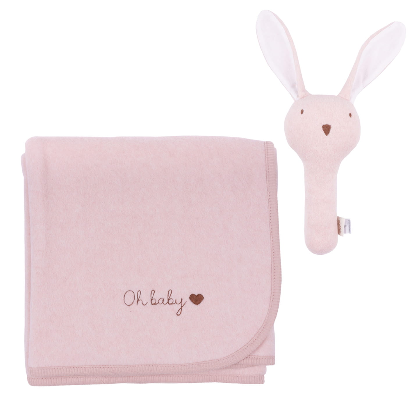Malomi Zestaw Fleece oh Baby Rabbit grzechotka i kocyk Pink Melange z personalizacją