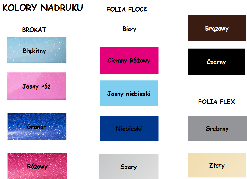 Napis wykonany jest z folii Flock w kolorze szarym. Folia ta posiada certyfikat OEKO-TEX Standard 100 - może być stosowana na produktach przeznaczonych dla dzieci.