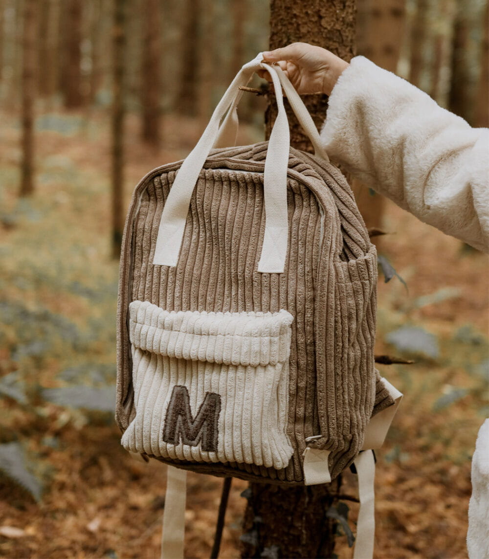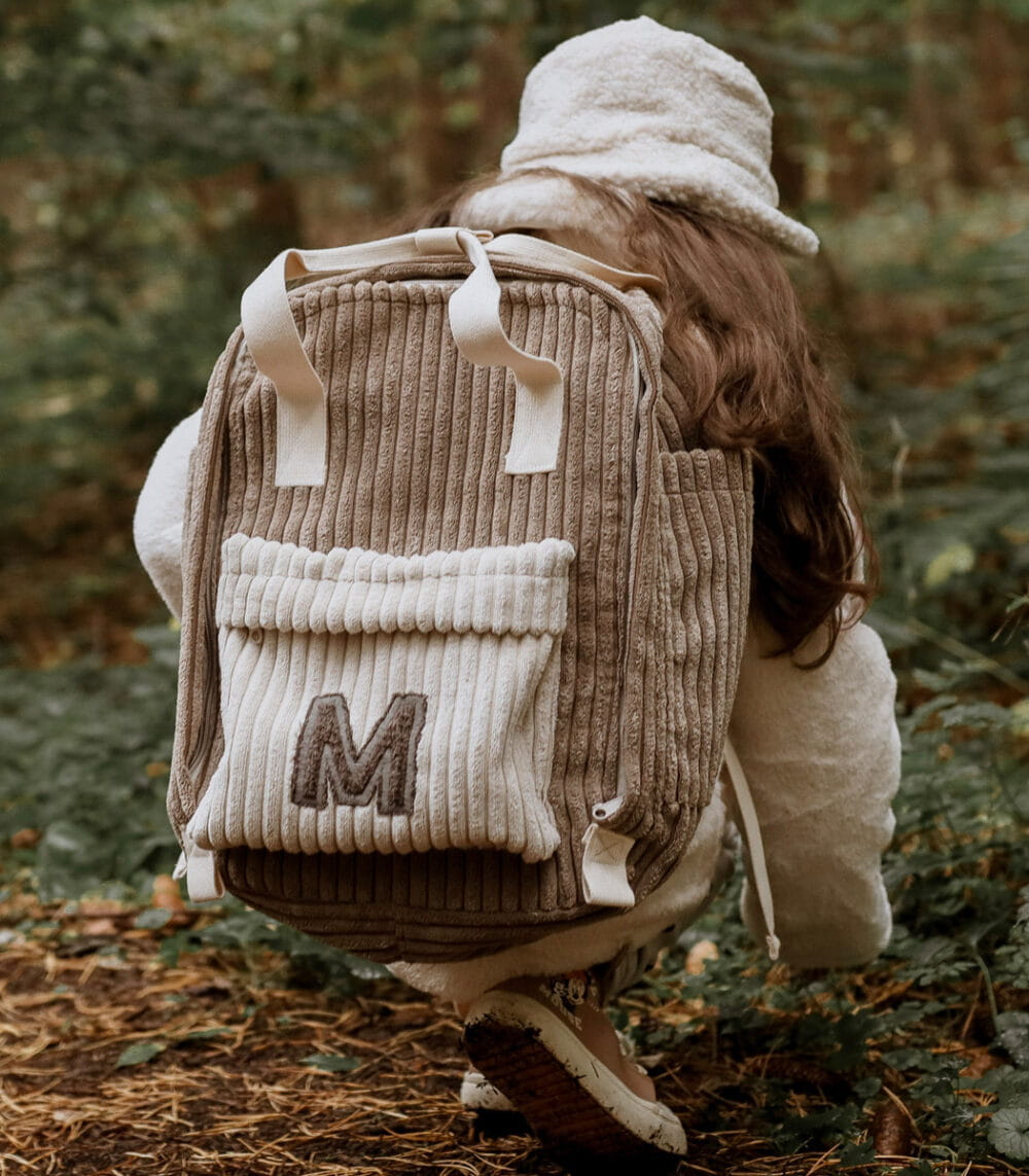 Muzpony Sztruksowy plecak dla dzieci z literką – duży, kolor Sugar Brown