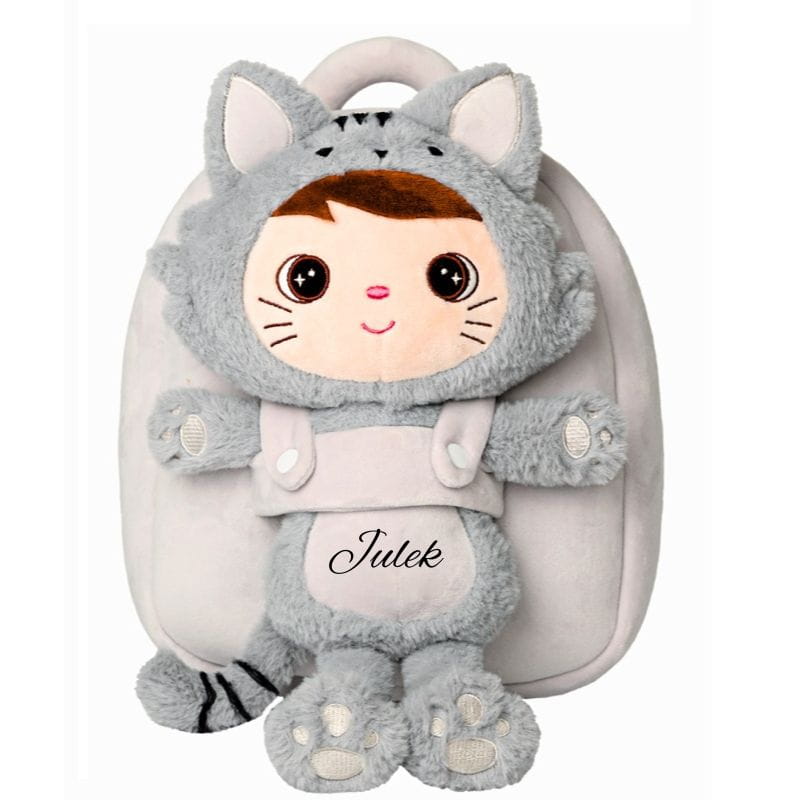 Plecak Metoo Puchaty Kocurek szary z odpinaną przytulanką z imieniem