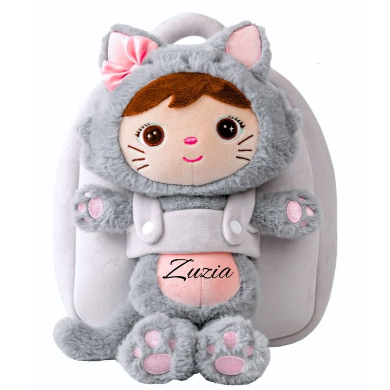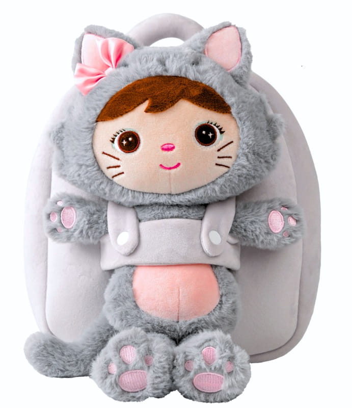 Plecak Metoo Puchaty Kotek szaro różowy z odpinaną przytulanką z imieniem