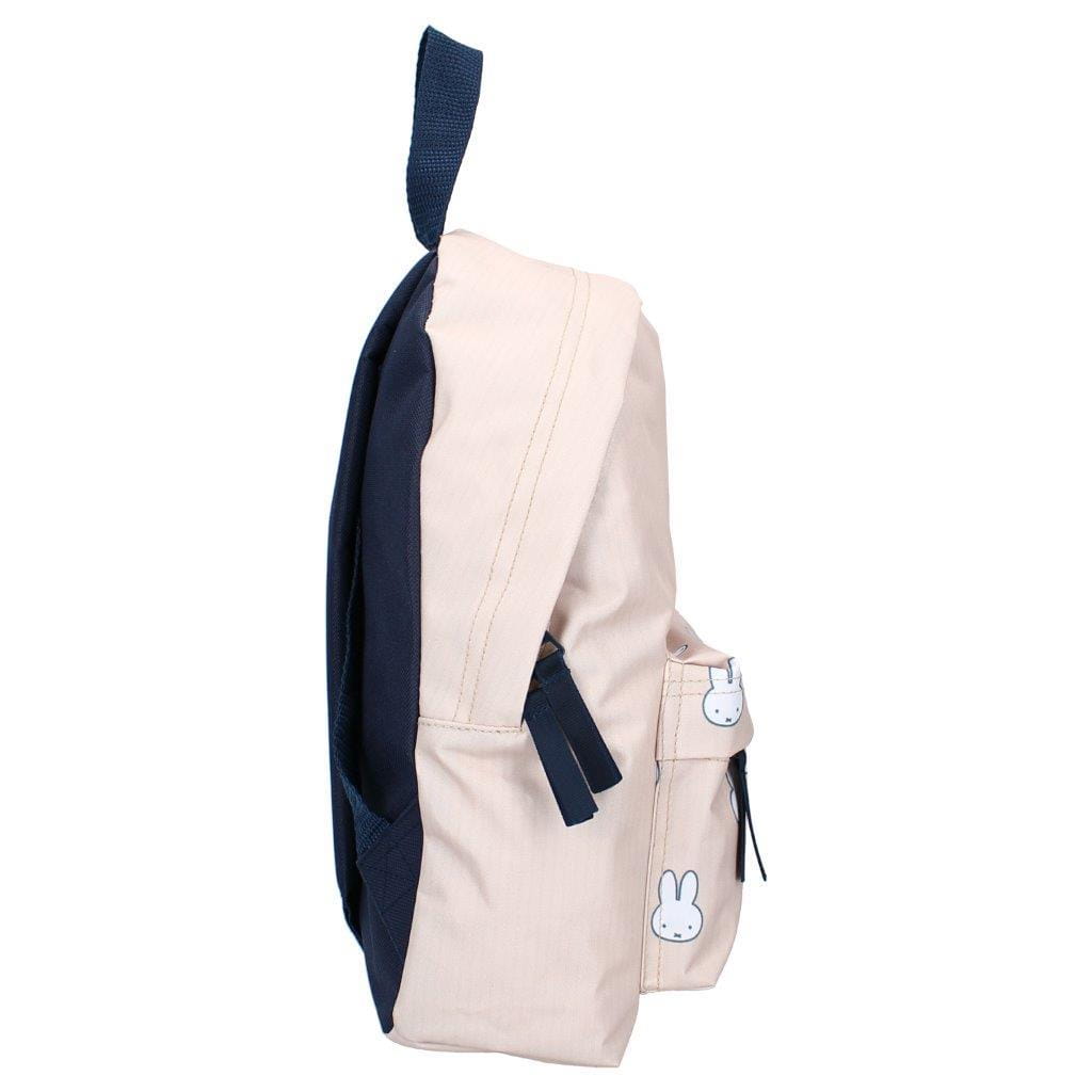 Ten uroczy, elegancki piaskowo-beżowy plecak z granatowym wykończeniem jest idealny dla małych poszukiwaczy przygód i fanów króliczki Miffy, bohaterki bajek i kiążeczek.