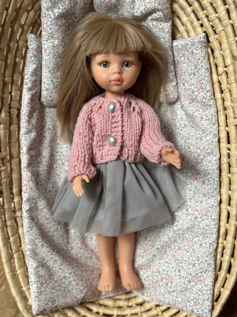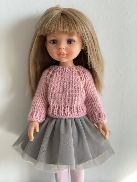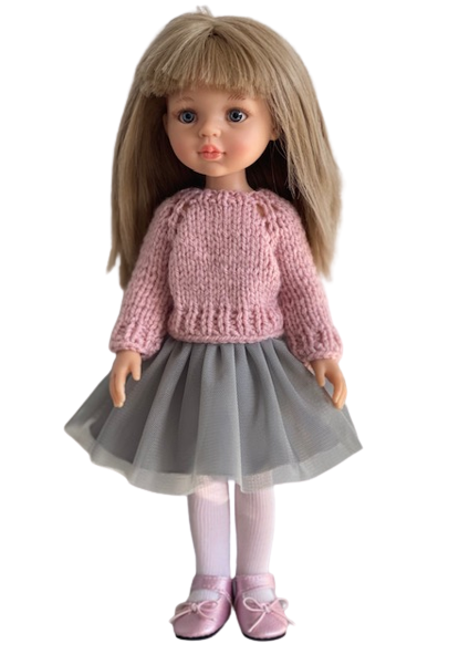 Ubranko dla lalki Paola Reina Amigas 32 cm - dwustronny sweterek szary i spódniczka tiulowa różowa